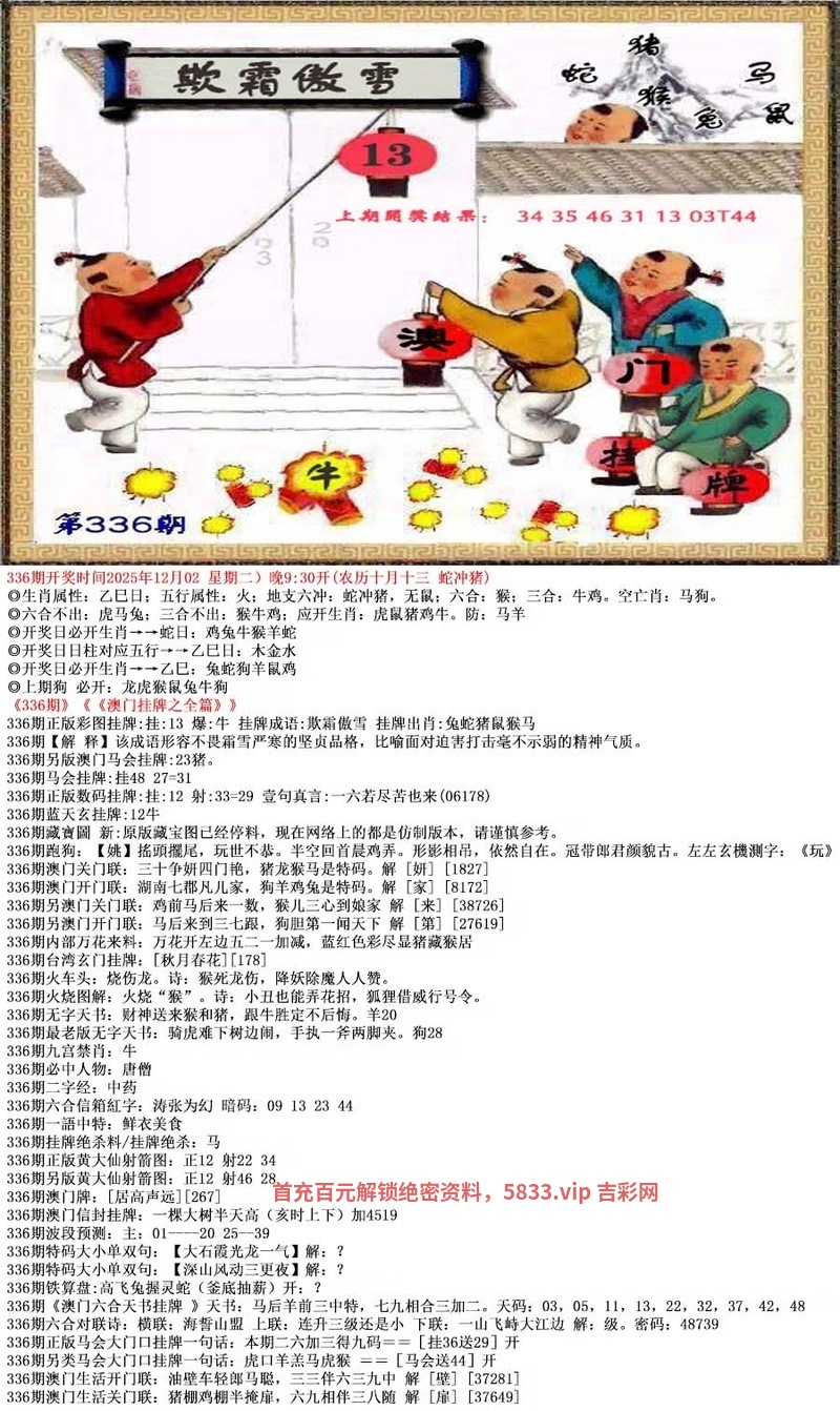 | 329期阳阴两肖【阴肖+牛鸡】开:牛17中 |